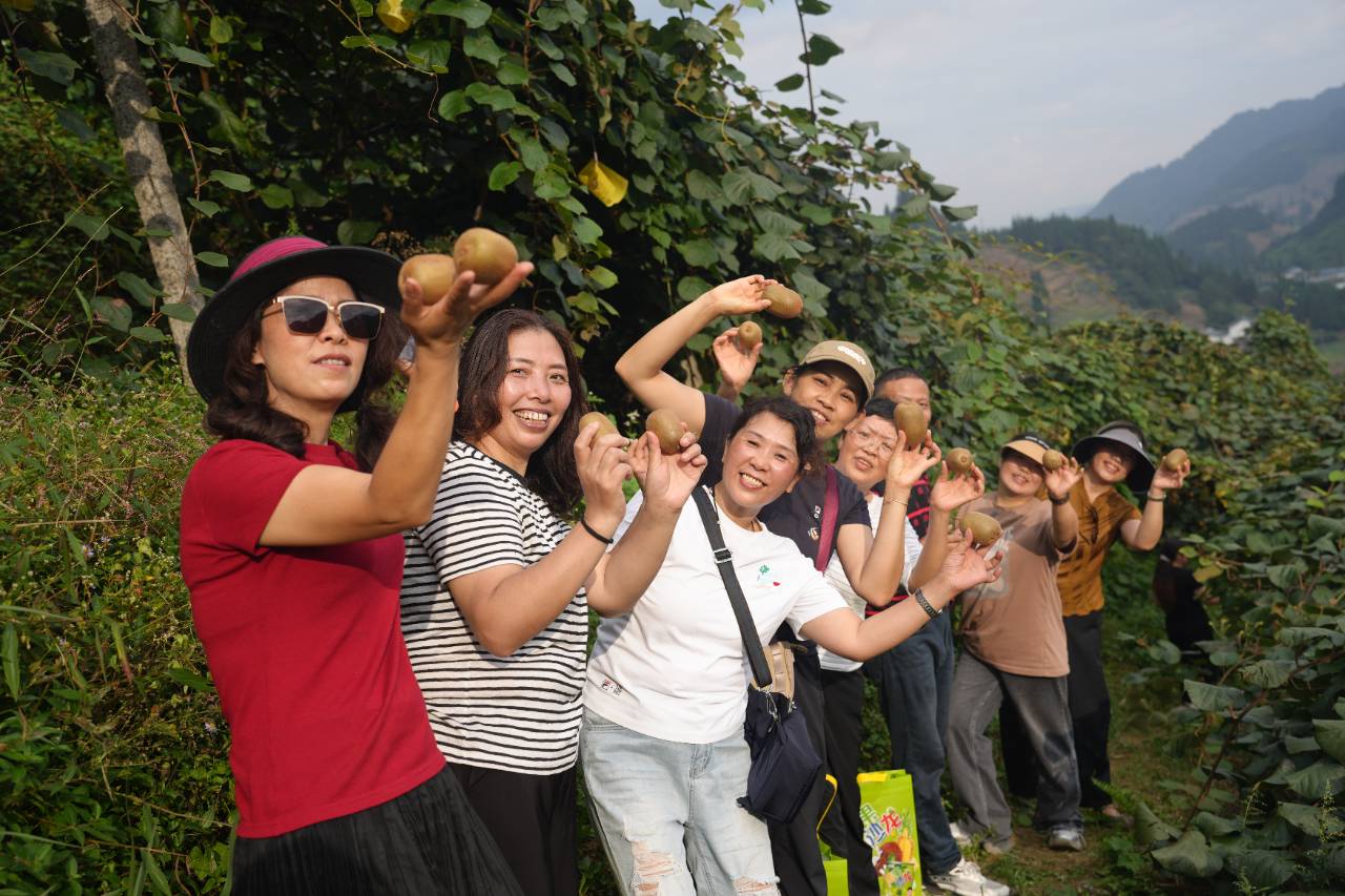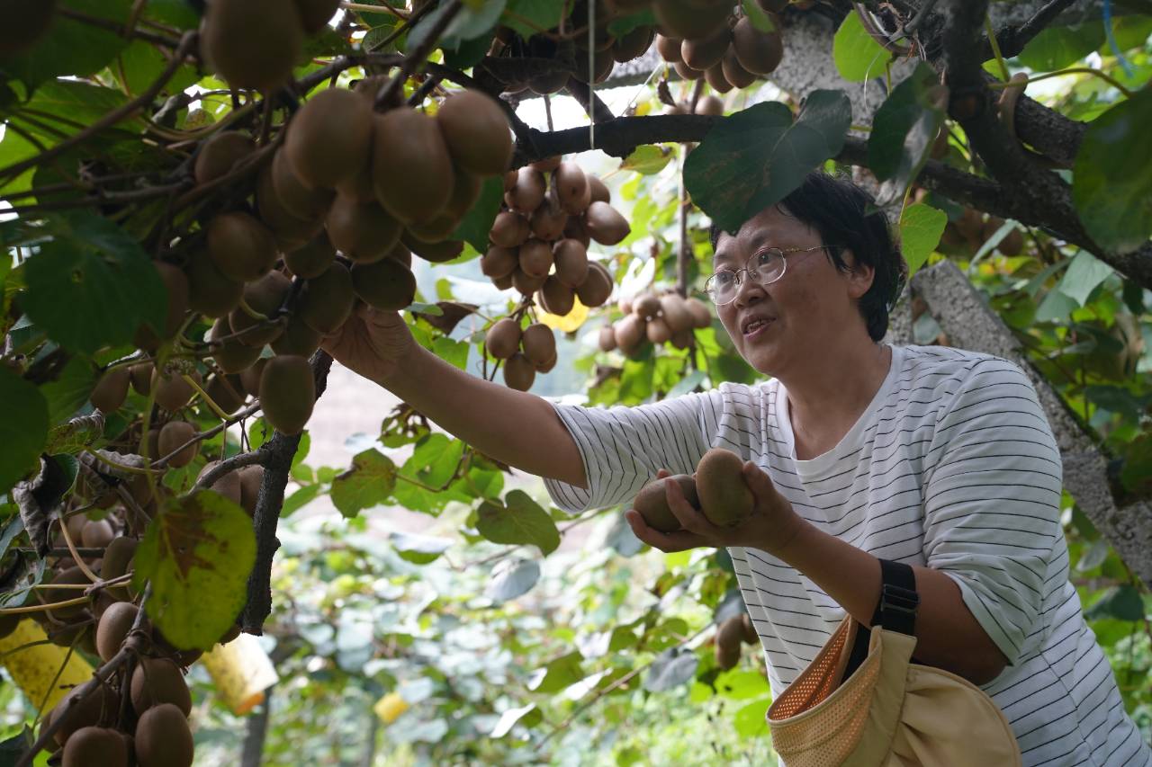 “听说这里的猕猴桃品质好、口感甜,今天约上亲朋好友一起来体验采摘,果肉细嫩多汁,甜度适中,带着自然清香,非常好。”游客胡纯翠的称赞,道出了这里猕猴桃的独特魅力。
