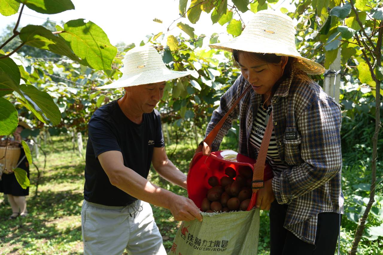 长安社区的景象同样火热。在坪上村民小组的基地里,工人们指尖轻捻,将饱满果实收入背篓;分拣车间内,一颗颗猕猴桃经严格筛选后装箱,即将成为千家万户的“秋日限定甜蜜”。