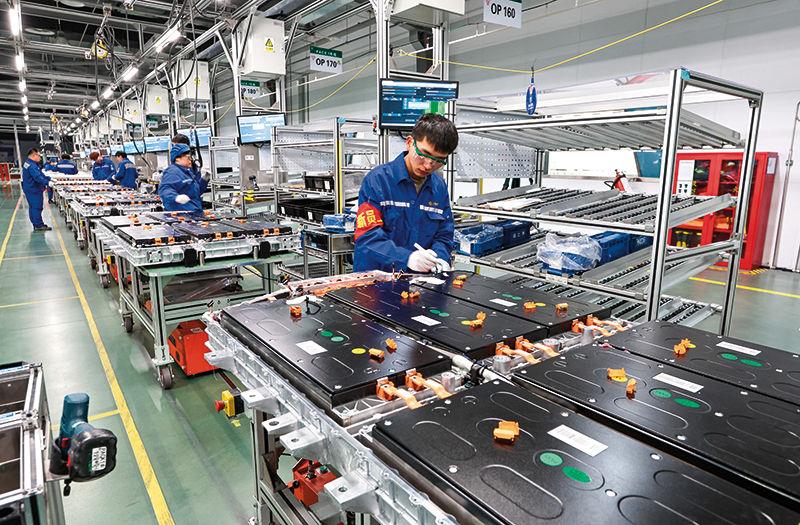 △工人在安装新能源汽车动力电池系统。不简单以GDP论英雄,优化产业结构、能源结构,推广应用节能降碳技术,发展绿色低碳产业,倡导绿色低碳生活……一场意义深远的绿色变革与转型正在神州大地上加速展开。