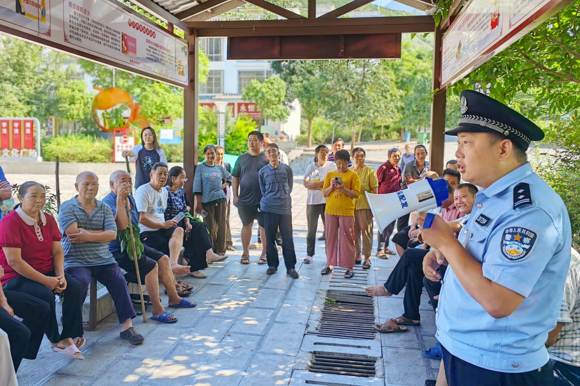 近日,永善县公安局大兴派出所民警走进社区,为休闲纳凉的老年人开展防范电信网络诈骗、防火防盗、道路交通安全及矛盾纠纷排查化解等知识宣传,进一步提升老年人的安全意识,用心守护“夕阳红”。