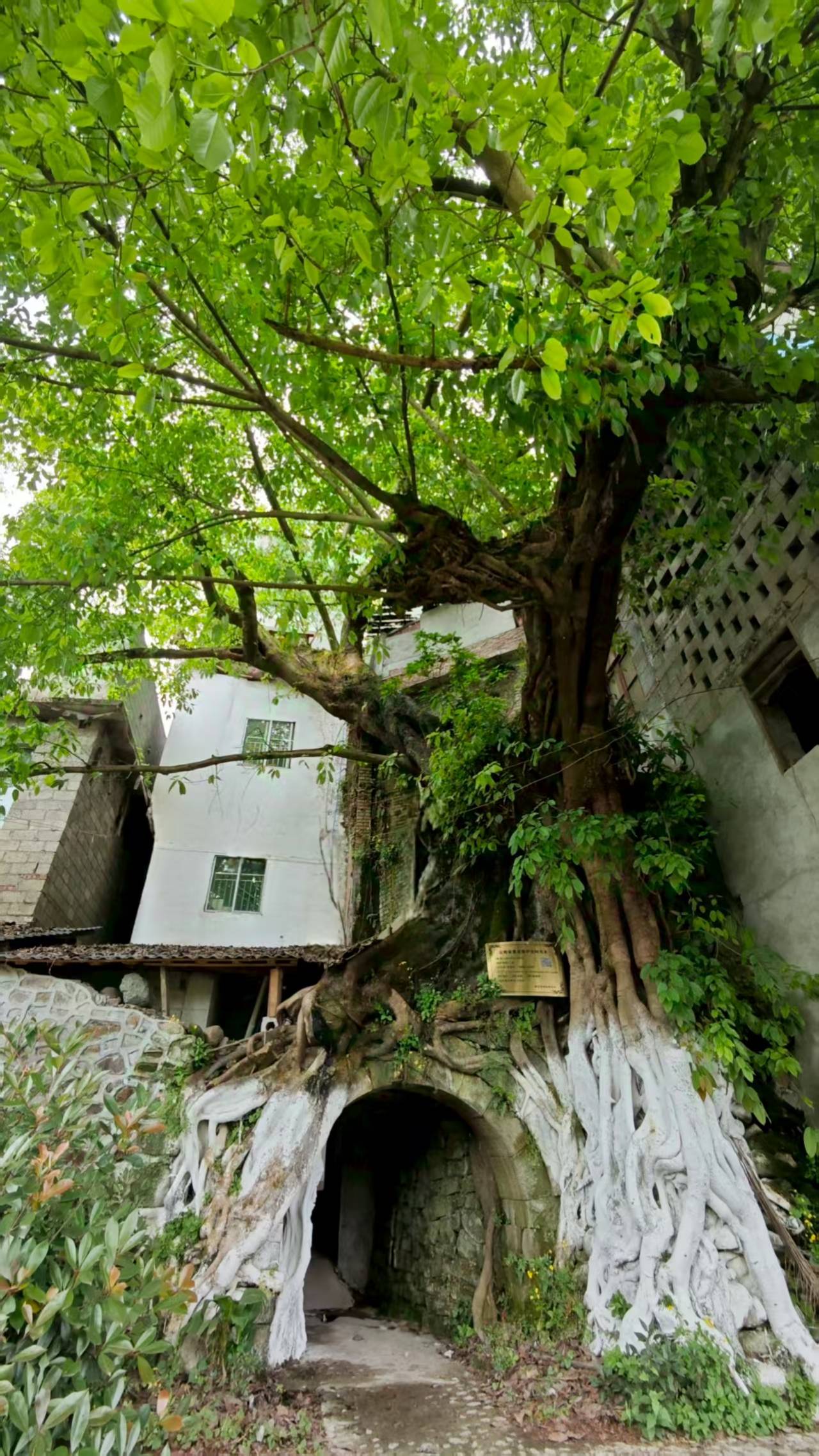 旧城镇素有“鱼米之乡”“百里林海”的美誉,全镇森林覆盖率达58.3%,对辖区内33棵古树名木实施挂牌保护。其中,“树包门”景观极具特色——树根与古城门融为一体,成为生态与历史共生的独特景观。“这处‘树包门’景观的历史可以追溯到明代,树的根系比较发达,把古城门包裹起来,从远处看,就像树根形成了一个天然的洞口,所以大家称它为‘树包门’。”威信县旧城镇林业站站长说。