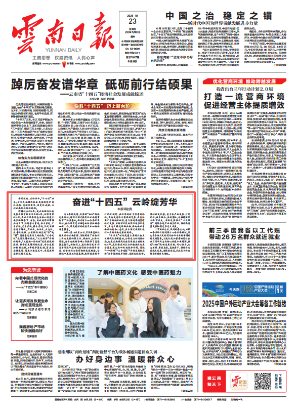 这5年的成绩,为实现“3815”战略发展目标、谱写中国式现代化云南篇章打下了坚实基础。面对前方一个个既定目标,我们还需毫不懈怠地抓实抓好每一项工作,用更精彩的成绩交出一份份满意答卷。