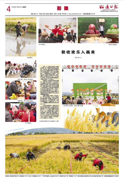 如今的昭通田野上,传统农事与现代科技相得益彰。在地形复杂的梯田里,村民们依然延续着传统的收割方式——手工割稻、脚踏打谷机脱粒,每一道工序都承载着对土地最本真的敬意。割稻比赛、稻田摸鱼、农产品展示、乡村文艺表演等活动的开展,不仅生动呈现了农村的丰收实景与农产品特色,还凝聚了村民情感,为乡村发展注入了新活力。
