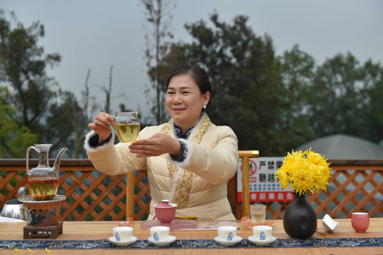 近年来,园区同步举办的菊花采摘节已成为水富市乡村旅游热门IP,每到菊花的花期身着汉服的游客徜徉花海拍照打卡,亲子家庭在田间体验采摘乐趣,茶艺师现场演绎菊花冲泡技艺等活动引得游客驻足品鉴。据统计,截至今年10月,园区已接待游客9万人次,开展农耕研学、自然教育等社会实践活动50余次,实现旅游收入1000万元,带动村级集体经济创收120余万元,并带动周边农家乐收入提升。这种“景观+产业”的发展路径,不仅让金丝黄菊成为乡村旅游的“流量密码”,还为农旅融合发展积累了宝贵经验。