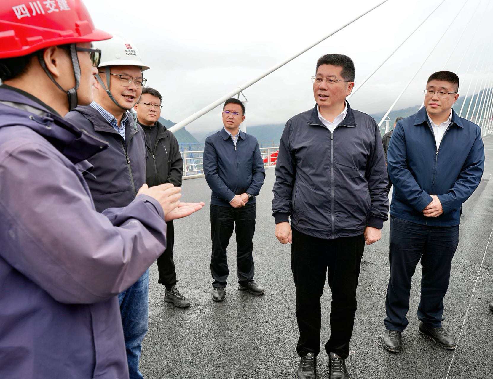 苏永忠在绥江县南岸镇调研新市金沙江特大桥建设情况。