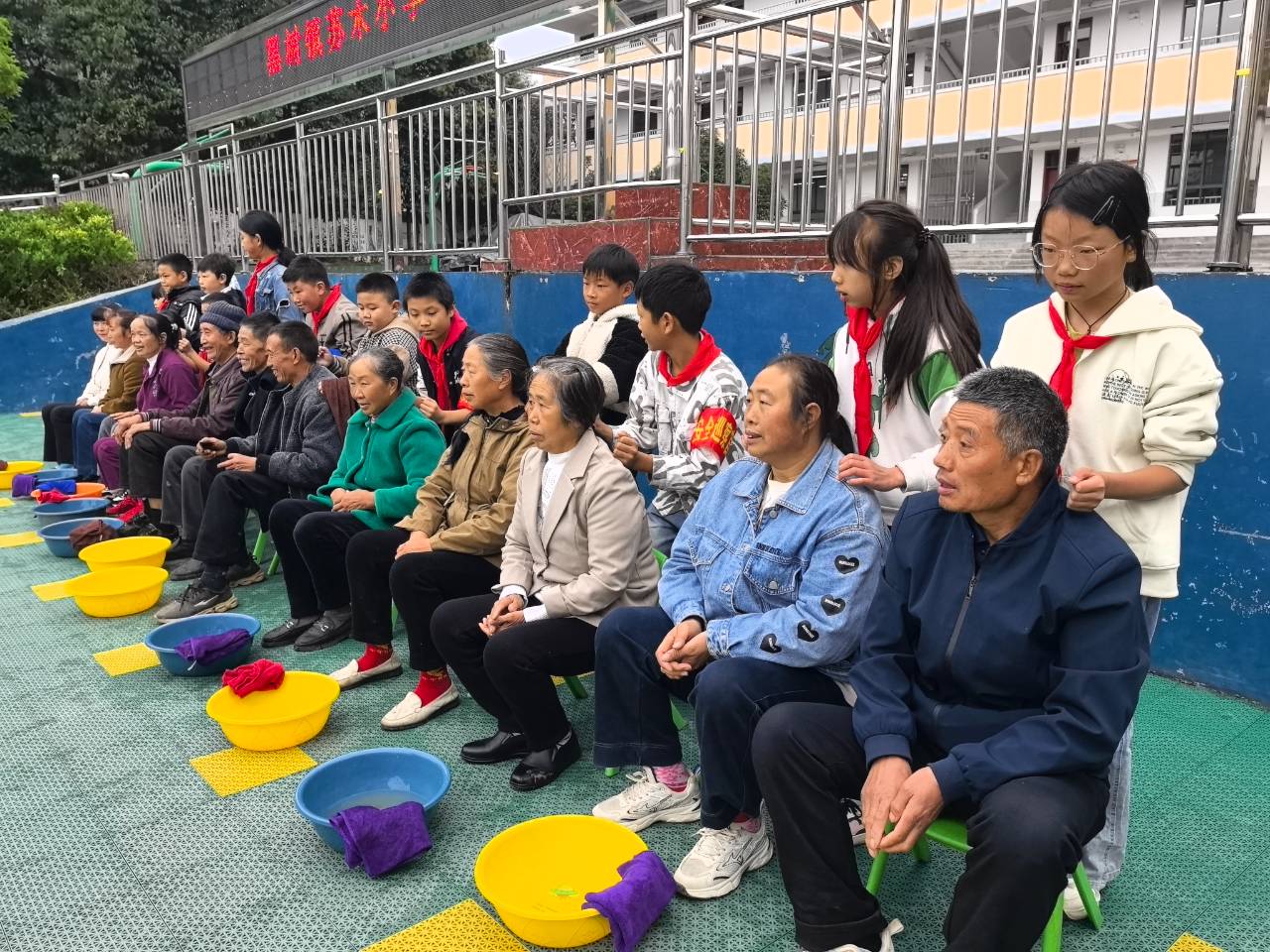 10月24日,重阳糕的甜香弥漫在镇雄县苏木小学的上空。校园操场上,一排排小板凳整齐摆放,12位花甲老人端坐其间,目光温柔地注视着前方。这是该校举办的“九九重阳节孝亲敬老”主题活动现场,孩子们正准备用自己的方式,给老人洗一次脚,向含辛茹苦抚育他们的爷爷奶奶表达感恩之情。