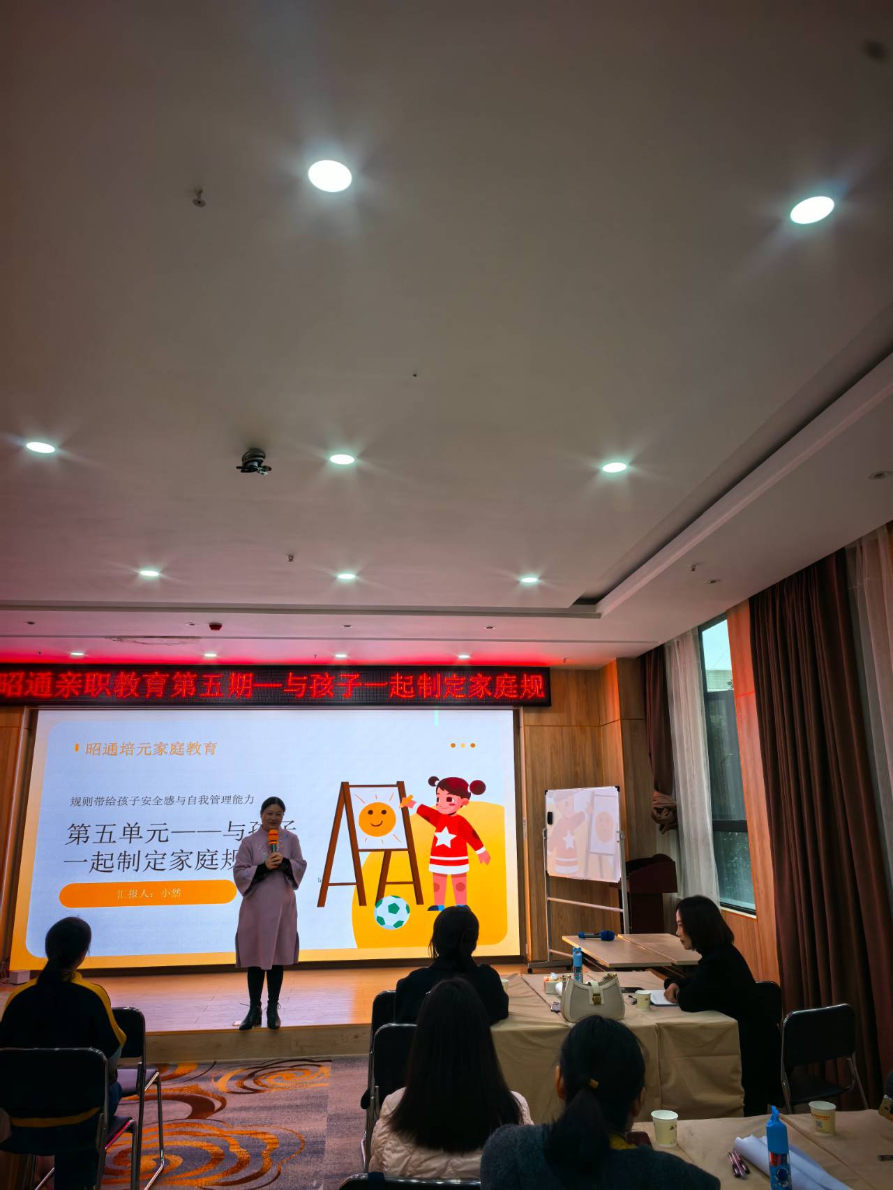 10月25日,昭通培元家庭教育第五期亲职教育公益课如期举行。尽管寒意渐浓,课堂内却气氛热烈。课程围绕“亲子规则构建”展开,在陈小然老师的引导下,家长们共同探讨了规则在孩子成长过程中的重要意义与实践方法。