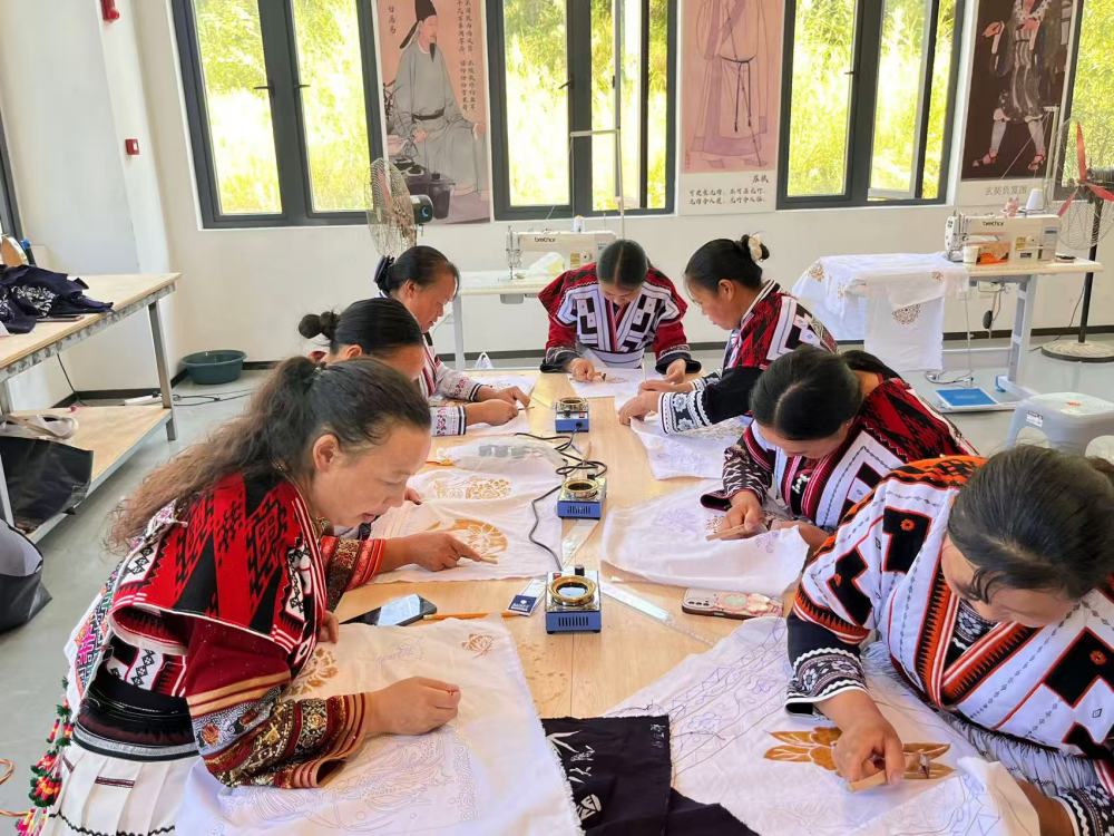 村民王慧说:“今年8月,我参加了当地组织的蜡染培训,刚开始什么都不会,学着拿蜡刀、画直线。培训回来两个月,一直在做,目前我在为一家公司做订单样品。”从零基础到能承接订单,王慧的经历是许多参与培训村民的缩影。这场跨界融合,不仅提升了非遗传承能力与产业创新水平,更同步培养了既懂技艺又懂市场的复合型人才,为当地发展注入了“非遗+产业”的双重文化力量。