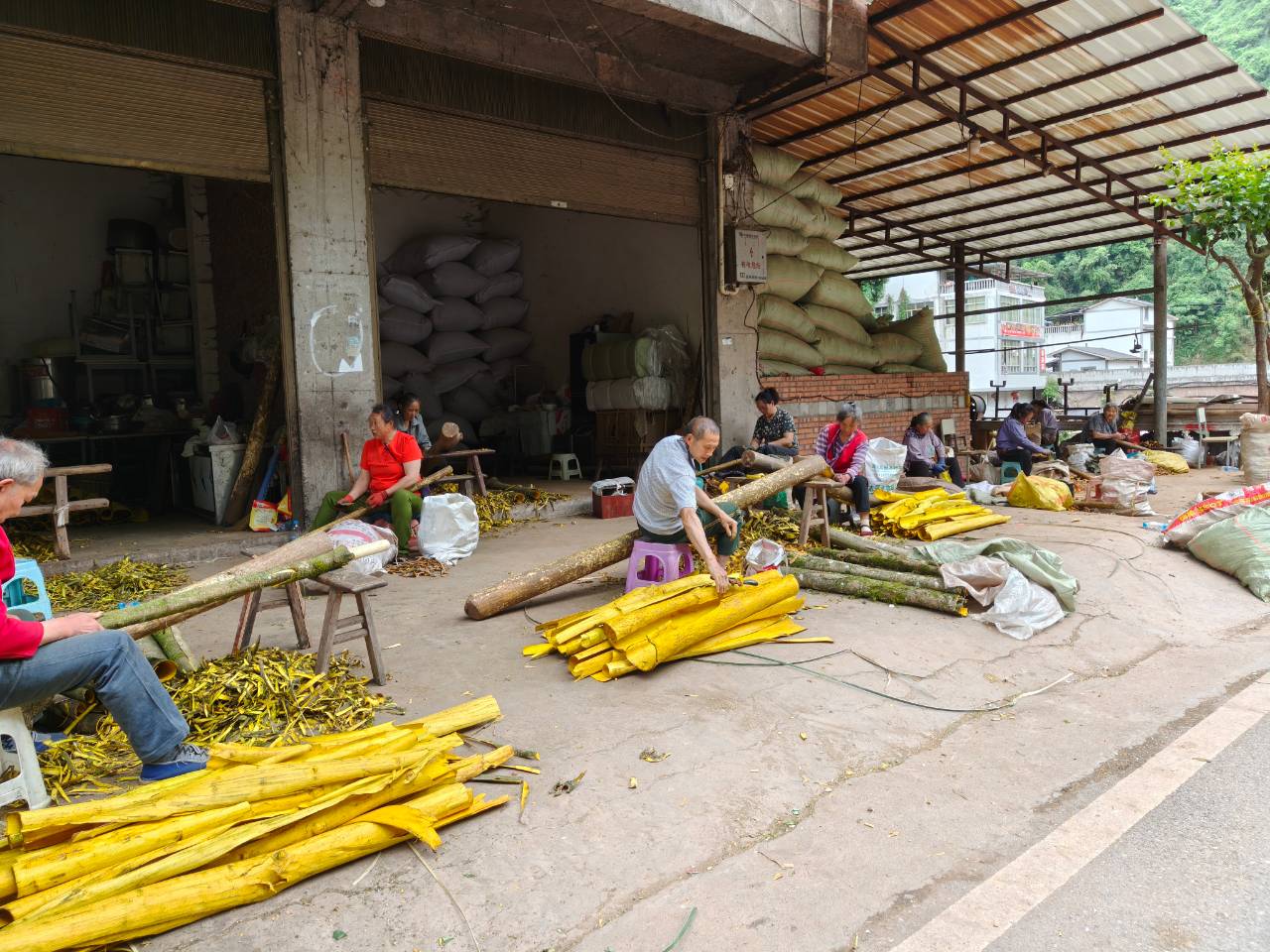 每年五六月,黄柏采收季到来,太平镇的山林深处便是一片热火朝天。村民们忙着砍运成年黄柏树,熟练地剥下黄褐色树皮,再运往加工点。刮皮、切丝、摊晾……“一刀刮下的是树皮,留出的是增收的厚度。”二溪村党总支书记龙云渊算得清楚:“今年我们村产量60多吨,初加工后,按每斤27元算,总收入高达324万元!”