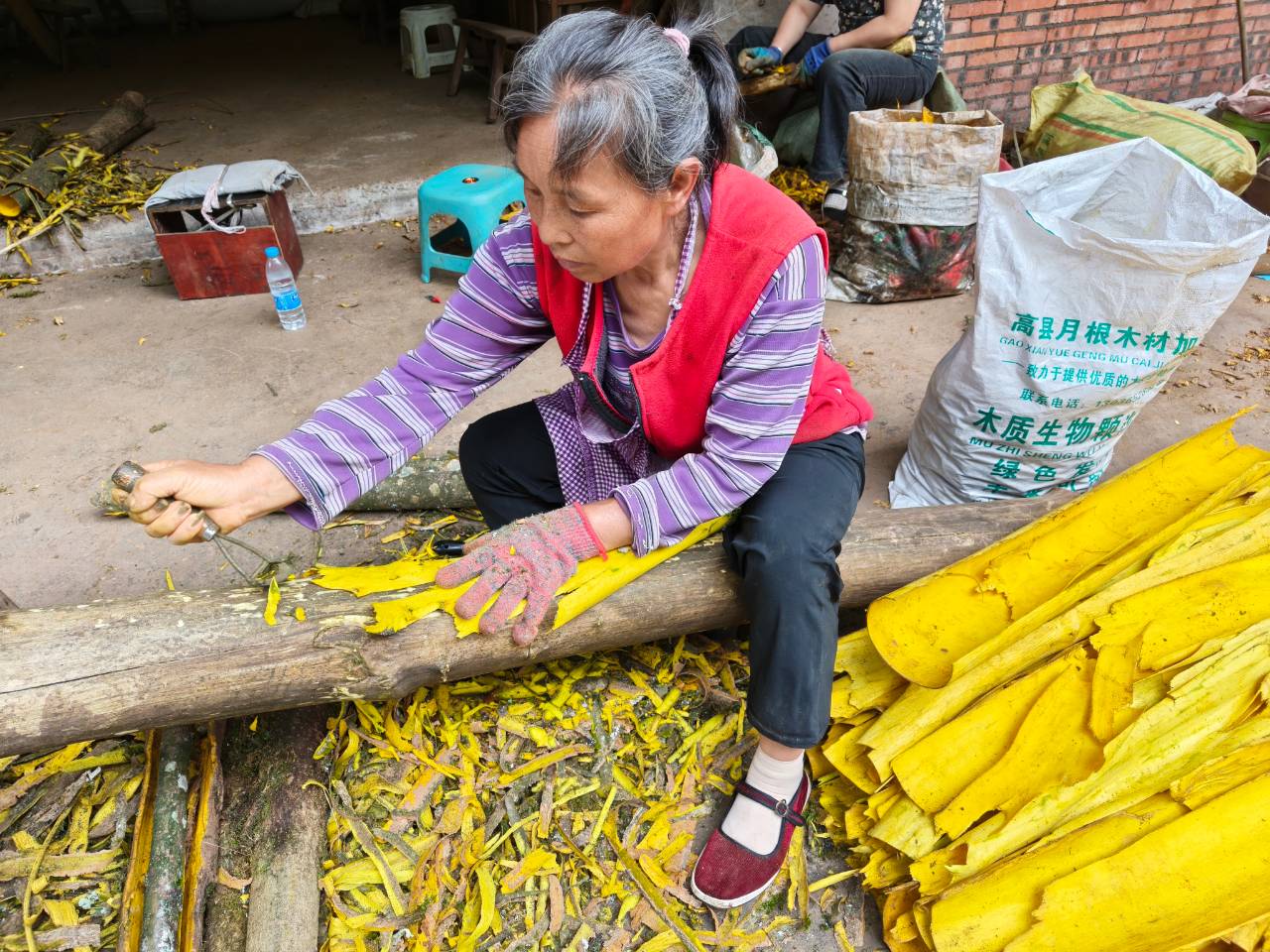 为提升附加值,黄柏产业正从种得好向下游延伸。二溪村的白祖林、龚井、刘树宽、覃永兵等人自发建起多个初加工点,组织周边村民进行刮皮、切丝、阴干。这直接带动了120余人在家门口靠刮树皮增收。