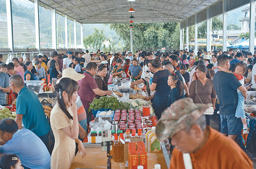 党群同心优服务,畅通反馈提质效。镇党委坚持以“党群联动”为核心,把群众需求作为工作导向,全方位优化“周末街”运营服务。成立由党员干部牵头的“周末街”工作专班,下设7个功能小组,全流程负责闲置场地改造、摊位规划、环境维护、活动策划等各项事宜,并对商户反映的雨天排水、电力保障、网络信号等问题做到快速响应、及时整改。发动党员群众组建志愿服务队,累计整治闲置道路17.4公里,清理修缮老旧设施,提升整体环境与资源使用效率。村党组织带头组织群众展销蜂蛹、核桃、滇皂荚米、棕包米、各类野菜等本地农特产品和豌豆粉、撒苤、火烧猪等各类特色小吃。县委、县政府联动整合全县9个乡镇货源,规范设置254个固定摊位,并临时增设多个摊位,充分满足经营需求。服务的持续优化,助推商户信心稳步提升,愿意留驻商户比例从首次赶集日的79.6%升至第三次赶集日的82.2%,为“周末街”持续运营筑牢群众基础。