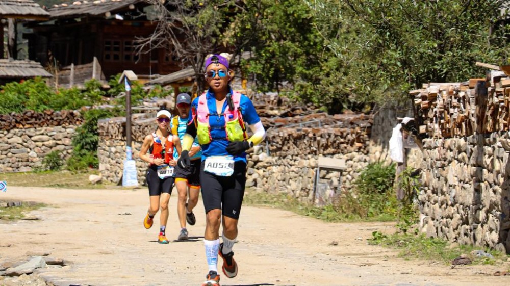 9月27日,首届巴松措山地越野跑在西藏林芝市工布江达县巴松措风景区举行,图为参赛选手穿过古村落错高村。新华社记者 格桑朗杰 摄