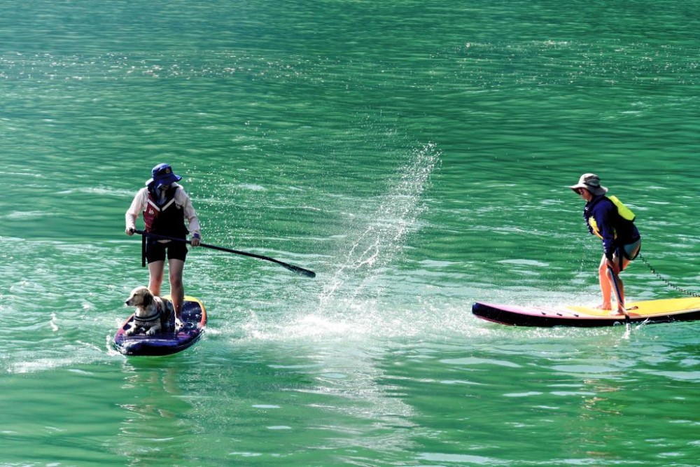 10月4日,游客在云南大理南涧彝族自治县公郎镇猛龙渡体验桨板。新华社发(适志宏 摄)