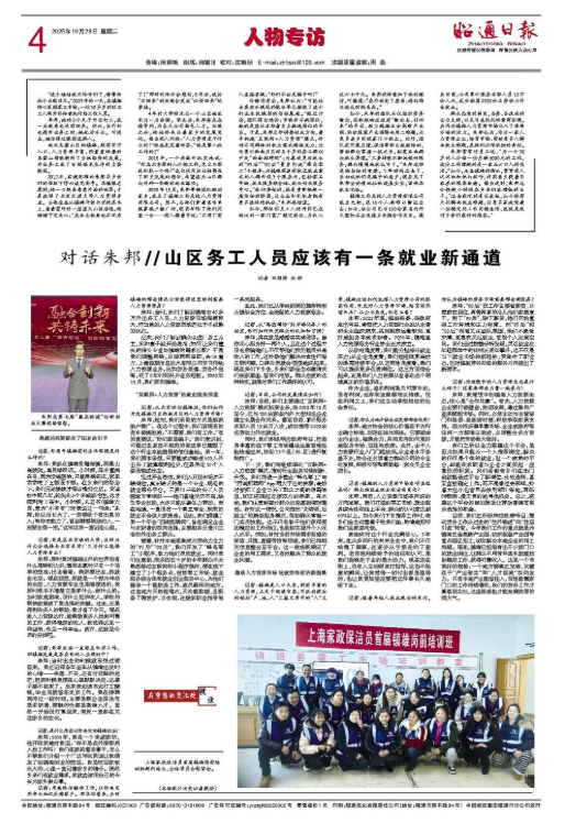 如今,朱邦的团队不仅组织劳务输出,还积极响应政府“输出去、引回来”的号召,助力镇雄五金高新产业园、纺织服装产业园解决用工难题,让更多老乡实现家门口就业。此外,团队还开展月嫂、保洁等职业技能培训,帮助群众掌握一技之长,拓宽本地群众就业渠道。“只要持续不断地做好服务,群众慢慢地就认可了。”朱邦这样总结信任的重建。5年时间过去了,当初说他们是骗子的老乡,现在见了朱邦会热情地拉他进屋坐坐,留他在家里吃饭。