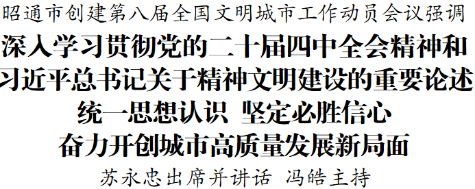 苏永忠出席并讲话。苏永忠强调,要学深悟透力行习近平总书记关于精神文明建设的重要论述,践行人民城市理念,把城市“得牌”与群众“得益”相结合,扎实做好“城”的文章,全力打造“新时代·昭通印象”,以强烈的政治责任感、历史使命感推动创建工作落细落实,以实际行动坚定拥护“两个确立”、坚决做到“两个维护”。