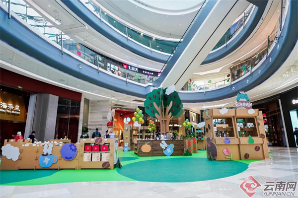 步入北外滩来福士广场一楼的木星中庭,仿佛穿越到了千里之外的云南。快闪店以“云海奇遇记”为主题,“咖啡树”装置拔地而起,象征着云南咖啡产业的蓬勃生机;云品小象吸引众多消费者驻足打卡,并通过社交媒体分享“来自彩云之南的快递”。无论是工作日午休的白领,还是周末前来购物的家庭,都被“都市里的云南”所吸引。