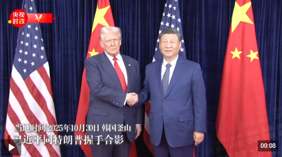当地时间10月30日中午,中美元首会晤开始前,习近平同特朗普握手合影。