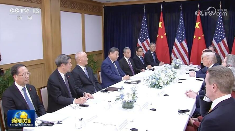 当地时间10月30日,国家主席习近平在釜山同美国总统特朗普举行会晤。
