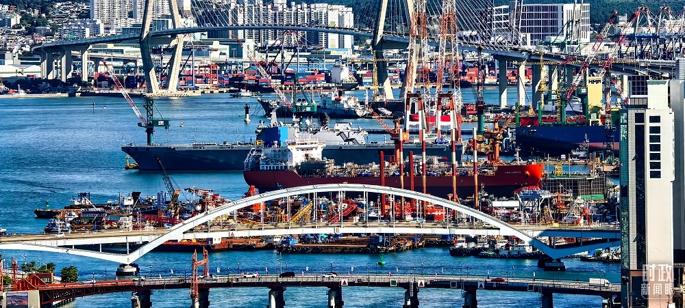 △韩国釜山繁忙的港口。(总台央视记者陈汉章拍摄)03