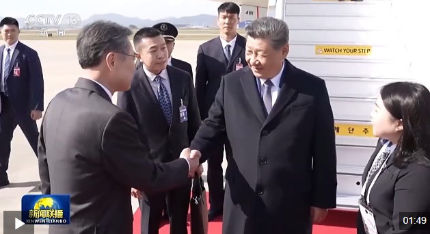 10月30日上午,习近平主席乘专机抵达韩国釜山金海国际机场。飞机落地后不久,中美元首会晤举行。这也是习主席抵达韩国后的第一场活动。