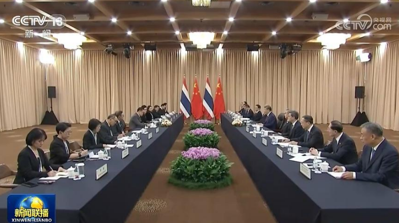 习近平指出,中国和泰国是好邻居、好朋友、好亲戚、好伙伴,常来常往、亲如一家。2022年11月我访问泰国,中泰关系进入构建命运共同体的新阶段,两国友好根基更牢、合作动能更强。今年是中泰建交50周年暨“中泰友谊金色50年”。站在新起点上,双方要继往开来,共同推动中泰命运共同体建设走深走实,助力两国各自现代化进程,为地区和平稳定和发展繁荣作出更大贡献。