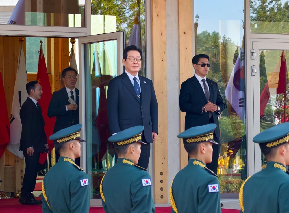当地时间11月1日下午,国家主席习近平出席韩国总统李在明举行的欢迎仪式。