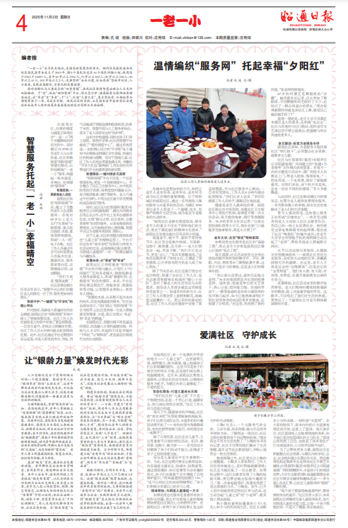 面对老龄化与儿童成长的“双重考题”,画苑社区坚持智慧治理与人文关怀双轮驱动。于“老”,依托“昭阳智理”平台,将应急守护、健康服务与精神滋养精准送达,让“养老”变“享老”;于“小”,打造“儿童之家”,集日常托管、兴趣培养与困境帮扶于一体,为成长护航。画苑社区的实践,正是国家老年友好型社会建设和未成年人保护政策在基层落地的真实写照与生动诠释。