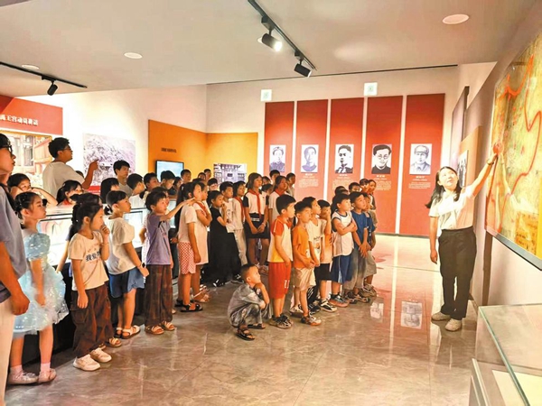 来自威信县旧城镇的孩子们参观红军主题展览。