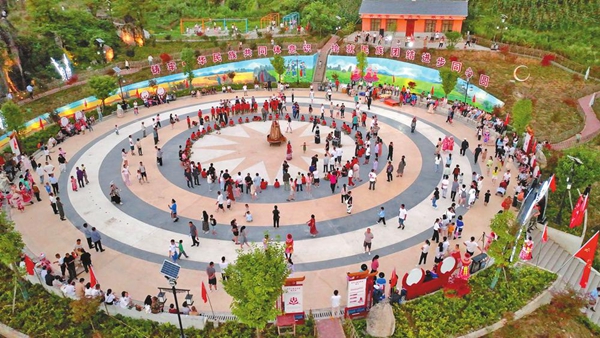 各族群众在威信县双河乡垕房石榴籽广场开展活动。