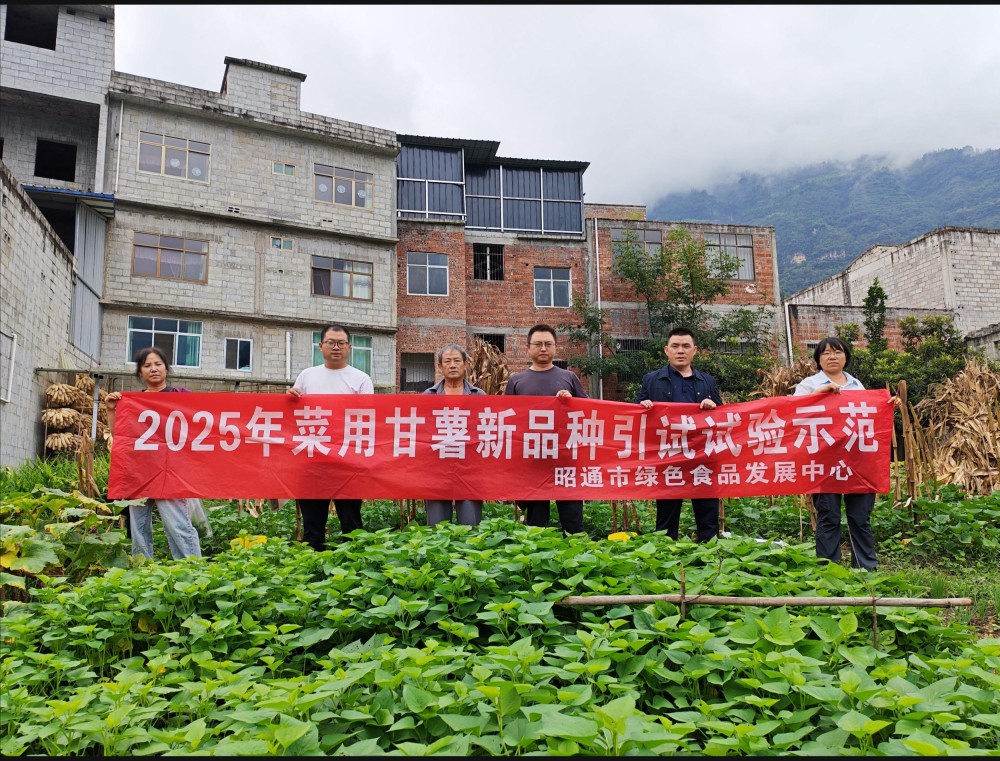 叶用型甘薯蔬菜品种在昭通市一直鲜有种植和销售。今年初。挂钩帮扶妥河村的昭通市绿色食品发展中心积极争取国家甘薯产业技术体系副首席科学家曹清河团队支持,从国家甘薯试管苗库引进近台农71、薯绿1号、徐菜薯7号等叶用型甘薯蔬菜品种在妥河村进行引种试验,从中筛选适宜昭通地区推广种植的叶用型甘薯蔬菜品种,以促进昭通高原特色产业创新发展,为乡村振兴提供产业支撑。