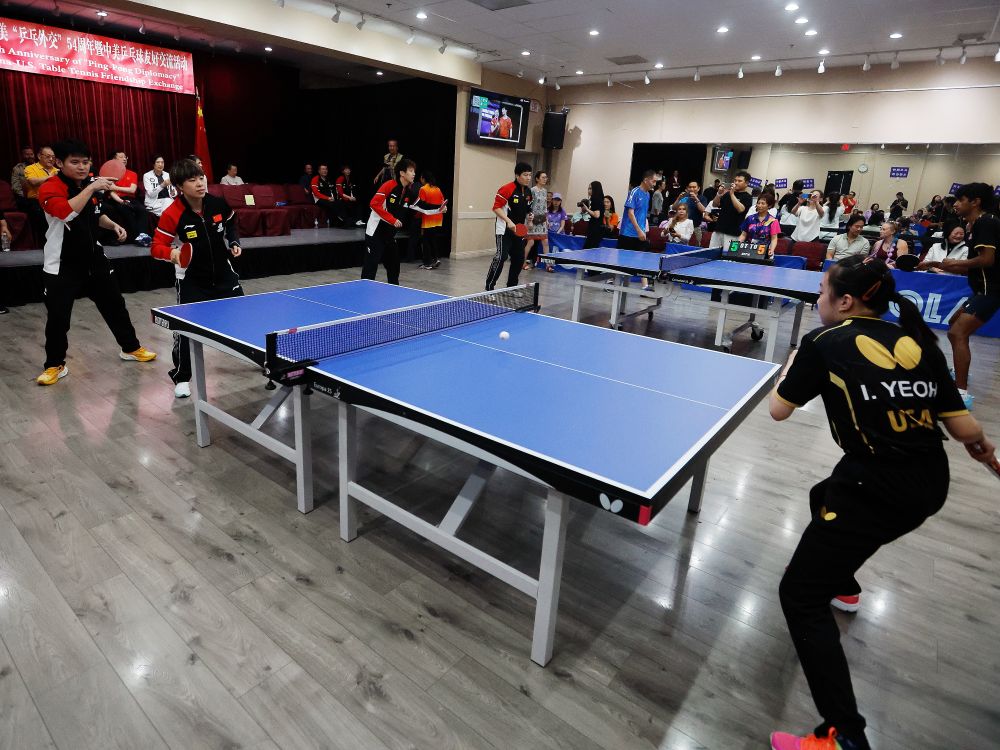 这是7月13日在美国内华达州拉斯维加斯拍摄的纪念中美“乒乓外交”54周年暨中美乒乓球友好交流活动现场。新华社发(邱晨摄)正如一些海外观察家所说,当两国元首坐下来对话时,“全世界都会受益”。坚定、自信、从容的大国风范,让全球媒体和观察家印象深刻。