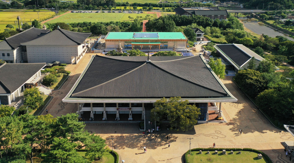 这是9月20日拍摄的韩国庆州博物馆(无人机照片)。新华社发(朴晋泽摄)从新罗王子金乔觉赴华修道到“东国儒宗”崔致远在唐朝求学为官,这座历史文化名城,见证中韩两国文化交流史上的动人篇章。