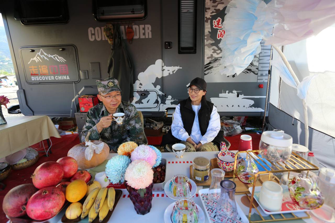 11月4日,在巧家县栗喉蜂虎房车营地,来自上海市的两名旅居游客在聊天。