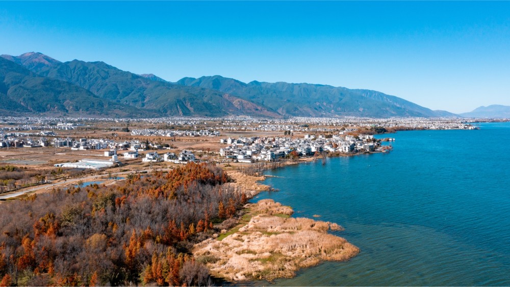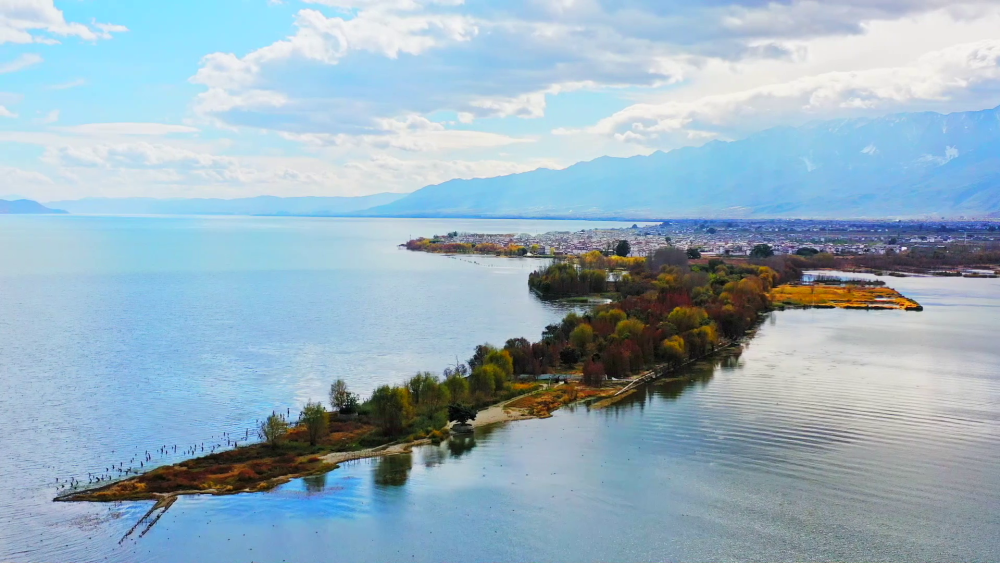 我是总台记者李腾飞,给大家推荐我非常喜欢的地方——云南大理。秋天的大理,天高云淡,气温舒适,洱海清波荡漾,岸边的桦树也披上了“秋装”。第一站,我们不开车,绿色出行,选择骑行或者漫步都可以,先来到洱海生态廊道。
