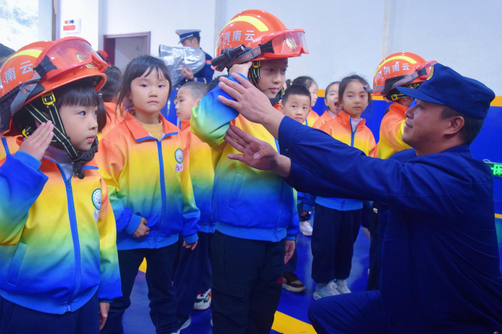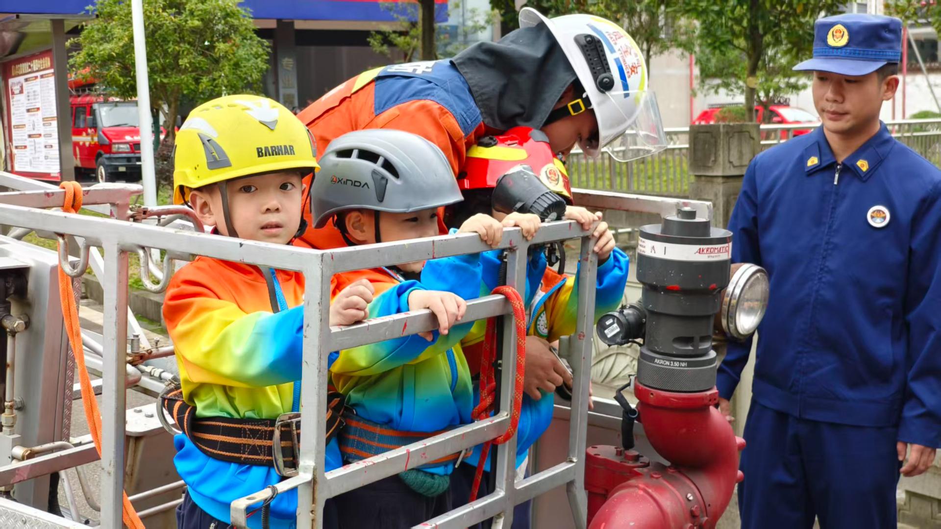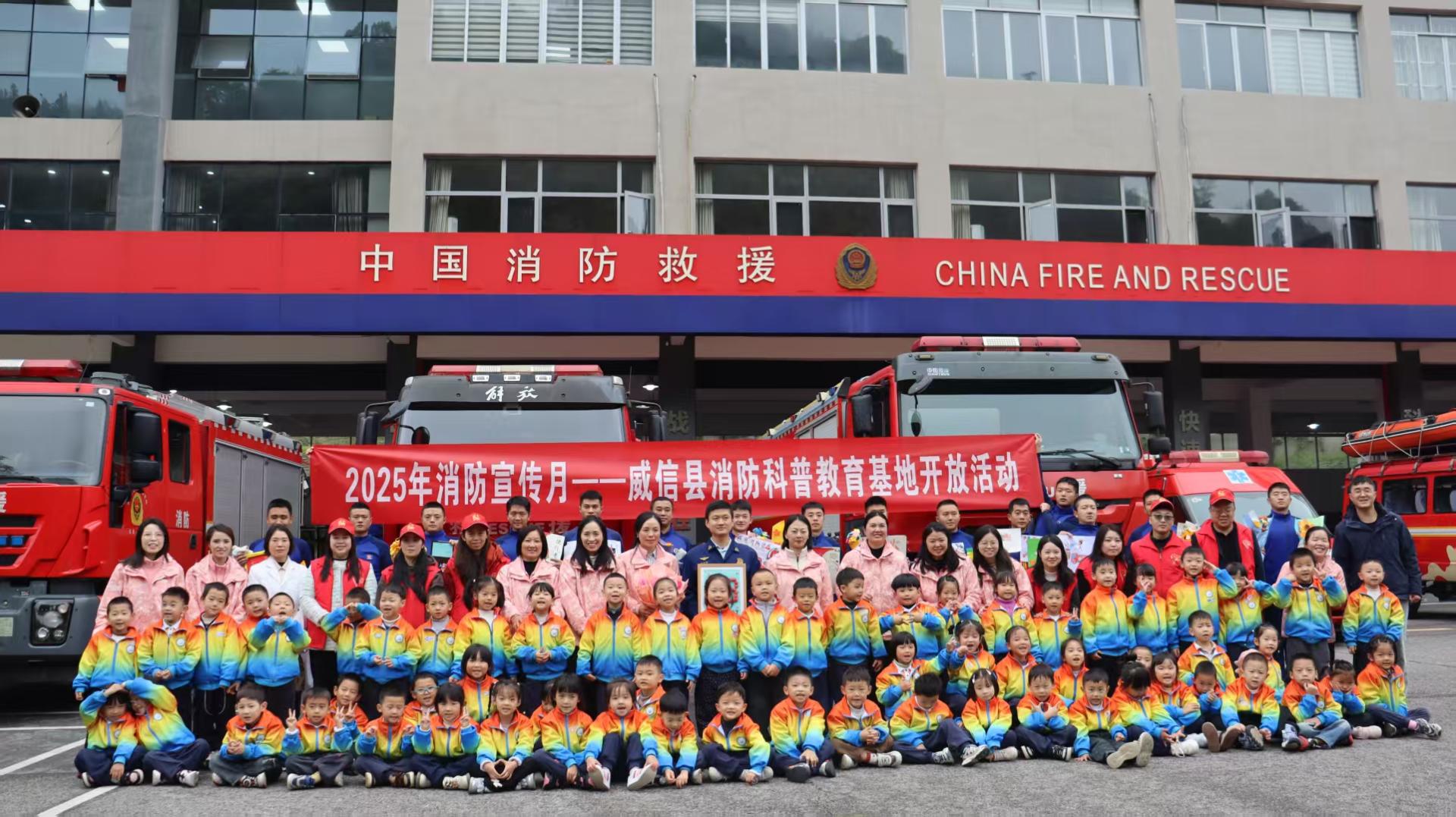 11月5日,威信县第二幼儿园组织大班幼儿走进县消防救援队,开展了以“致敬逆行英雄,探秘火焰蓝”为主题的沉浸式体验活动。活动中,消防员用浅显易懂的语言,带领孩子们参观了营房、器材库等日常工作与生活场所。在丰富的互动环节,消防员演示了快速穿戴消防服,并邀请孩子们试戴头盔、试穿救援马甲,亲身体验装备的厚重与肩负的责任。孩子们还通过模拟“灭火”小游戏,在专业指导下学习并实践了“提、拔、握、压”的灭火器使用口诀,在游戏情境中初步掌握了基本的消防技能。