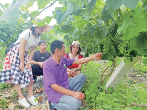 永善县明子村明子山生态农业观光园的农技人员带领游客观察葡萄生长情况。受访者供图