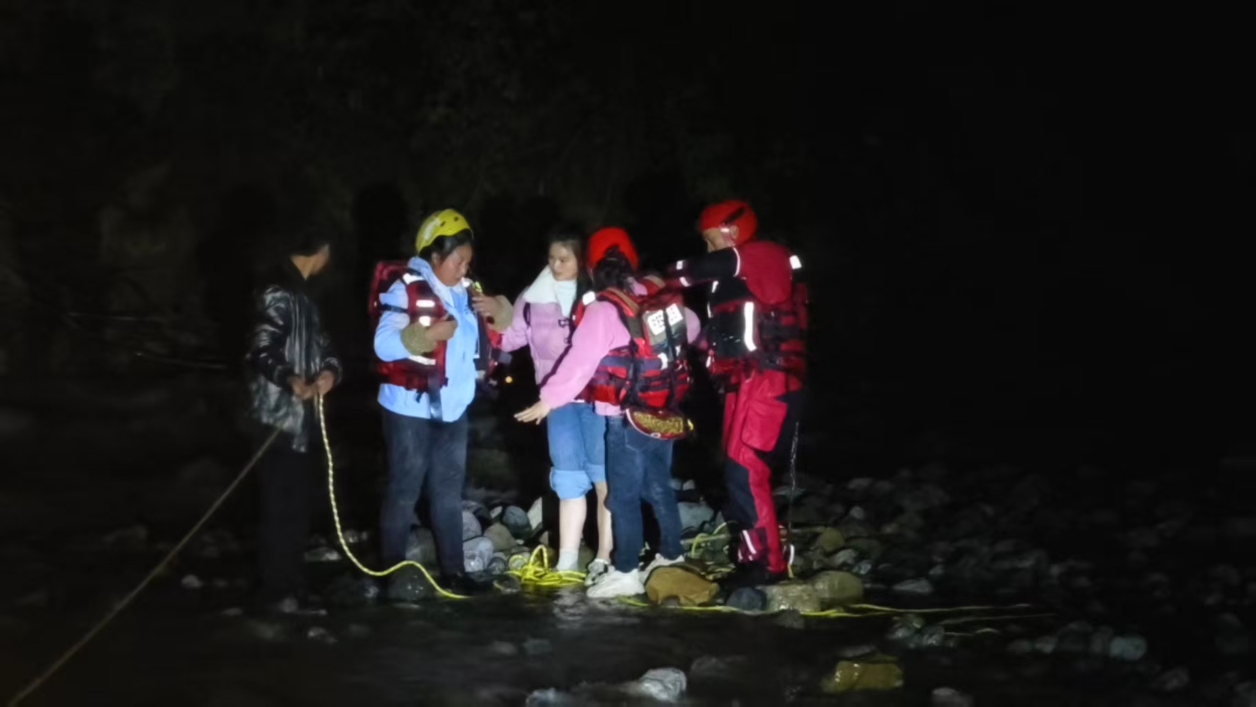 11月6日18时22分,大关县消防救援大队接到报警称:位于大关县悦乐镇与永善县墨翰乡交界的洒渔河妥青段的墨翰大桥下20米处,有4人被困在河中央,情况危急,请大队救援。接警后,大关县消防救援大队立即出动2车12人赶赴现场救援,同时调派距离较近的悦乐镇专职消防队1车4人先到场处置。
