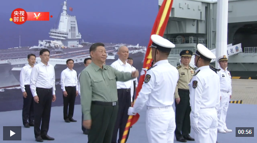 我国第一艘电磁弹射型航空母舰福建舰入列授旗仪式5日在海南三亚某军港举行。中共中央总书记、国家主席、中央军委主席习近平出席入列授旗仪式并登舰视察。