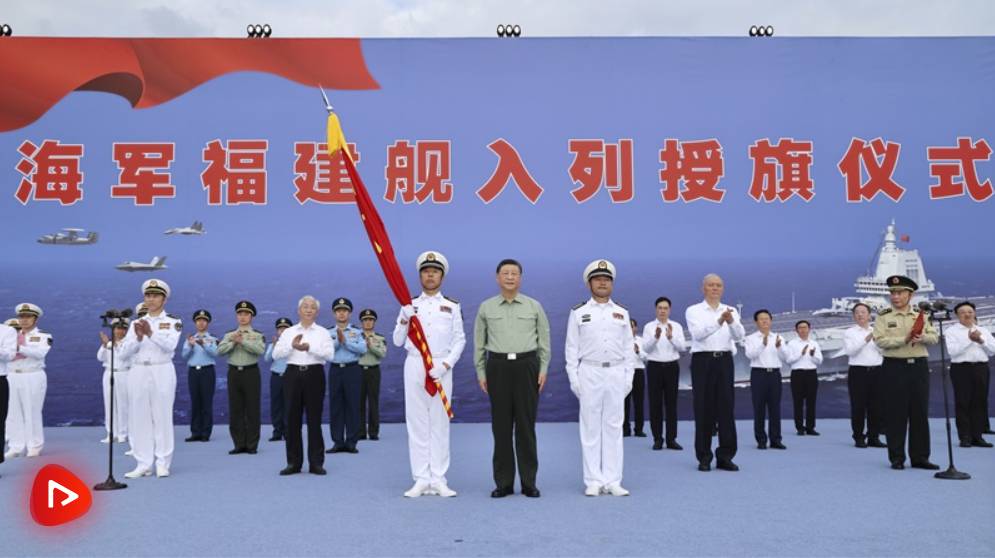 我国第一艘电磁弹射型航空母舰福建舰入列授旗仪式5日在海南三亚某军港举行。中共中央总书记、国家主席、中央军委主席习近平出席入列授旗仪式并登舰视察。