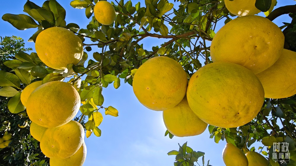 △梅州金柚。(总台央视记者许永松、范凯拍摄)近年来,当地大力推广标准化种植,测土配方、科学施肥、病虫绿色防控、无病毒苗木培育等栽培技术,进一步提高金柚品质。