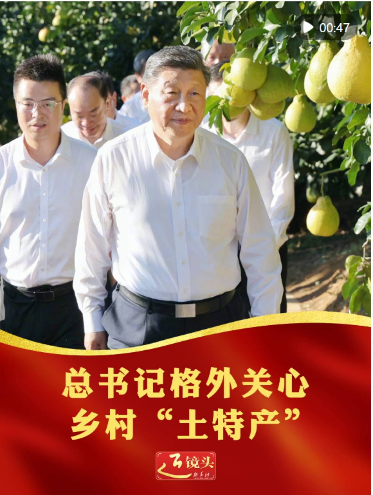 11月7日下午,习近平总书记在广东省梅州市梅县区雁洋镇考察南福金柚种植基地,了解当地推进乡村全面振兴等情况。