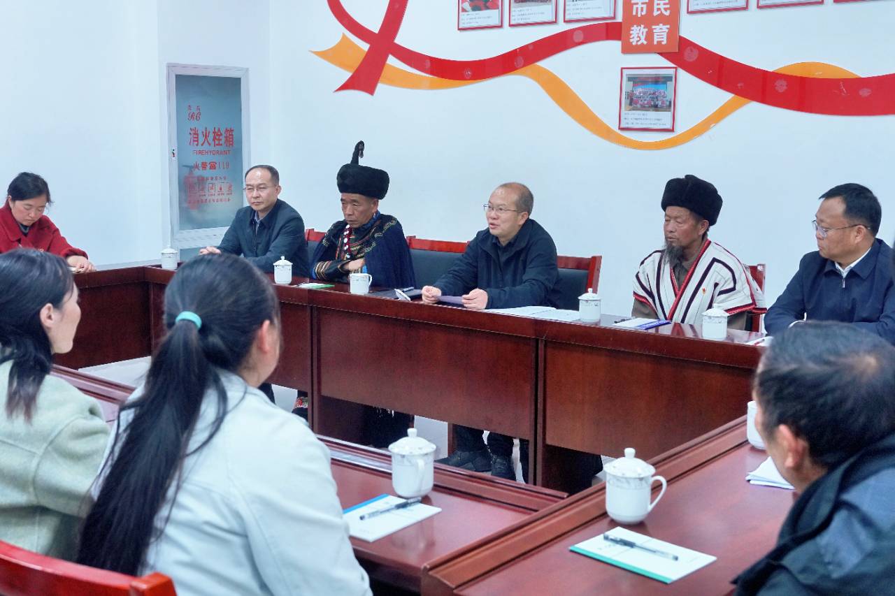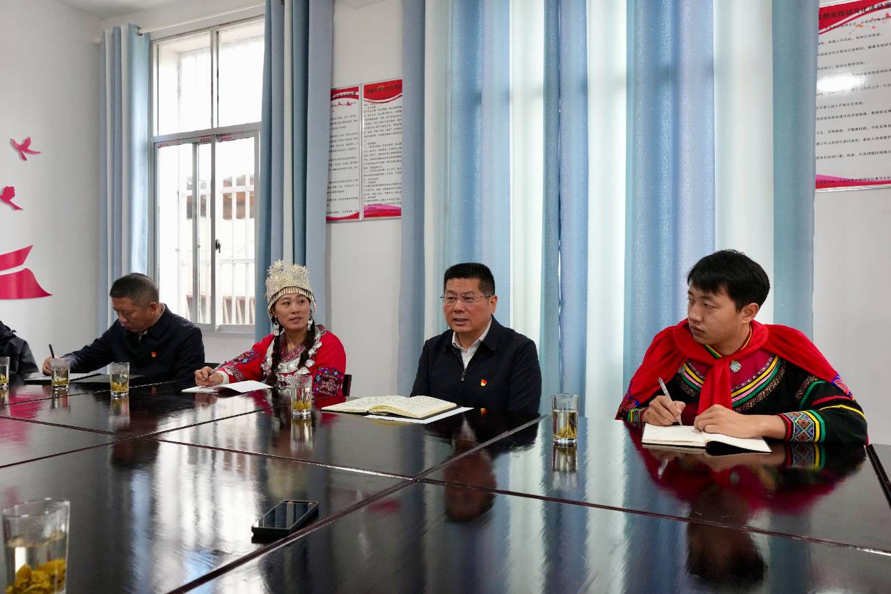 苏永忠在彝良县小草坝镇宝藏村宣讲党的二十届四中全会精神。