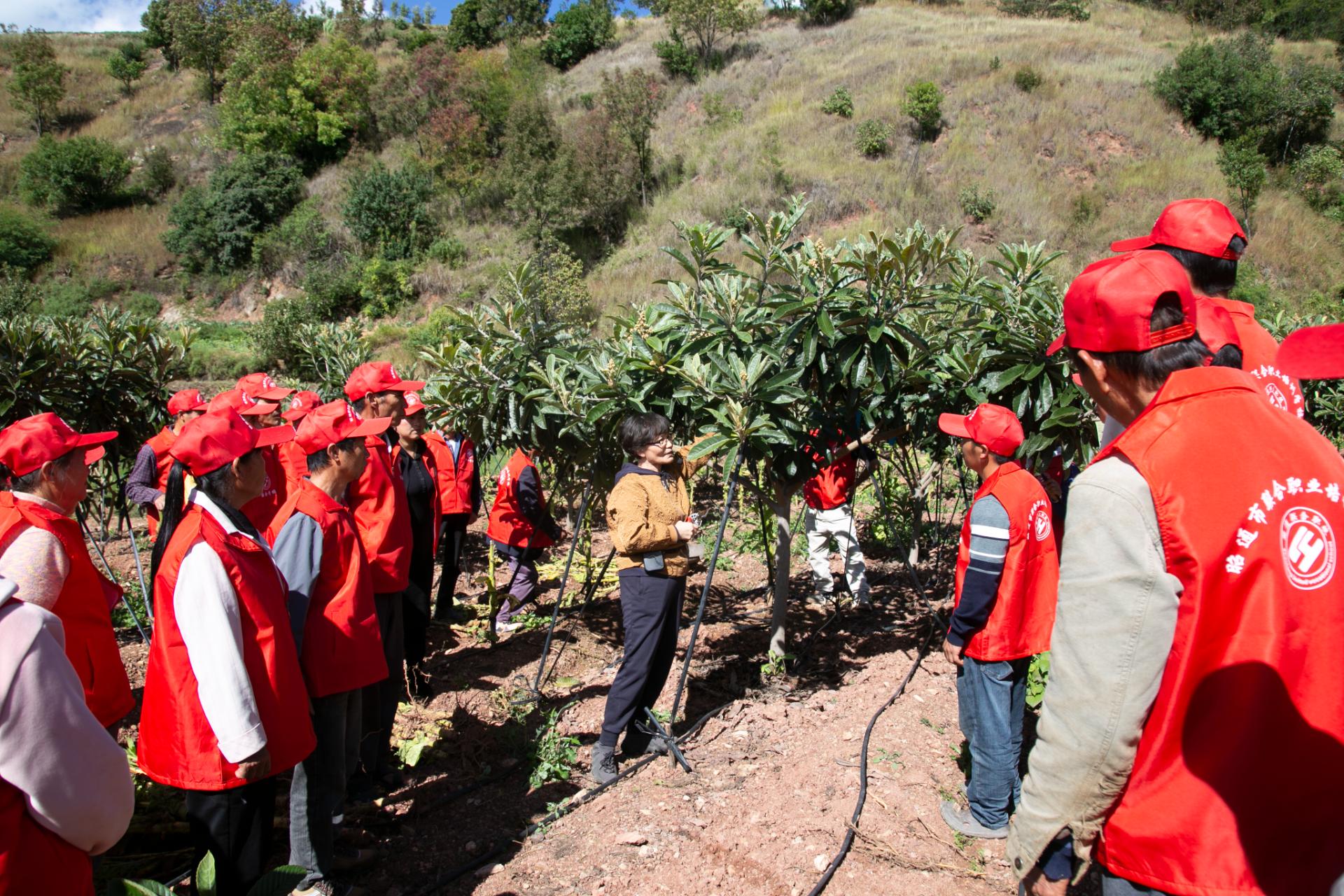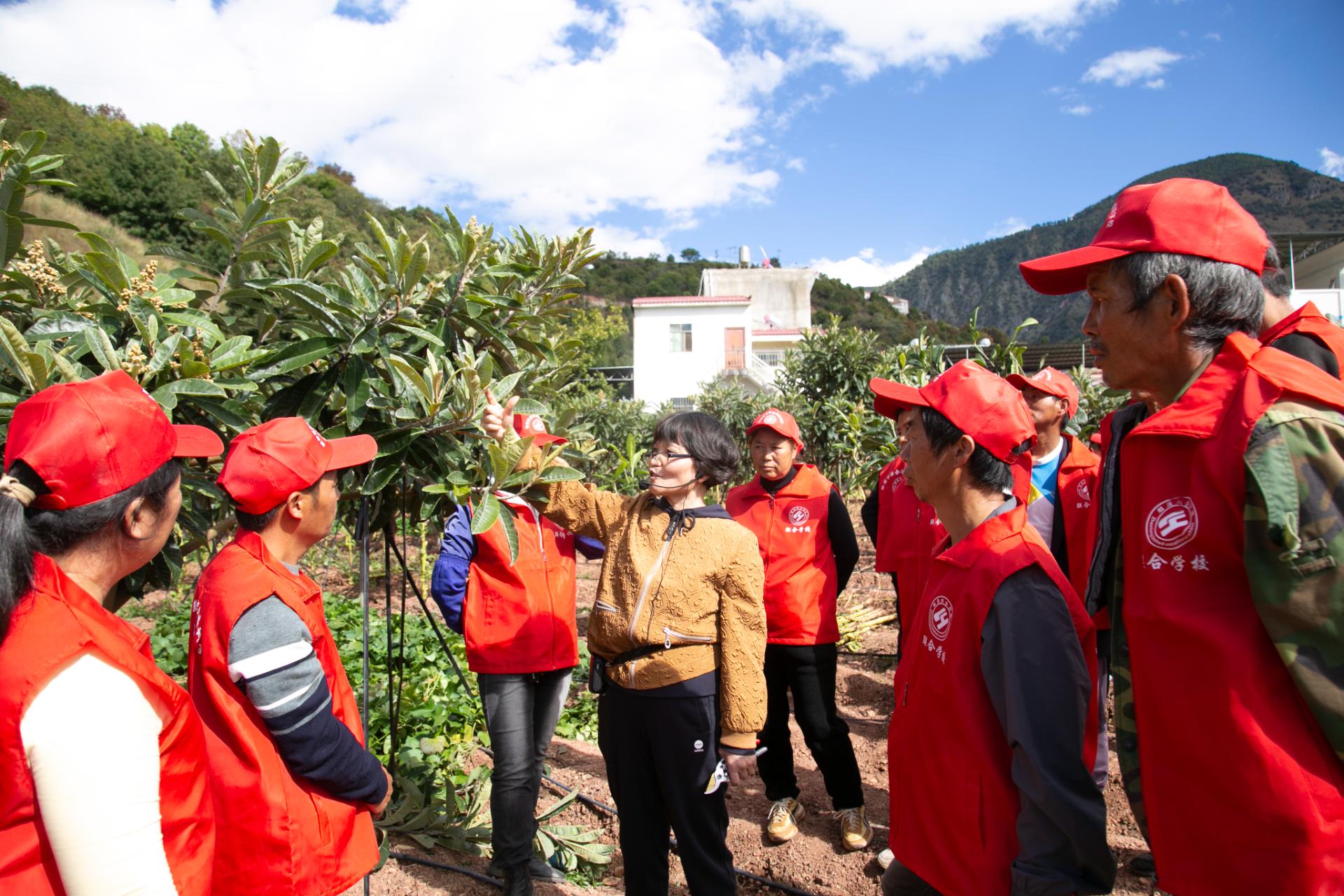 “若要收获大果,疏果时每串保留3个果实即可。”在蒙姑镇牛泥村枇杷种植培训现场,教师带领学员走进果园,开展拉枝、剪枝、疏花、疏果、施肥及病虫害防治等关键技术的实操教学,通过“手把手”指导提升学员实践能力。