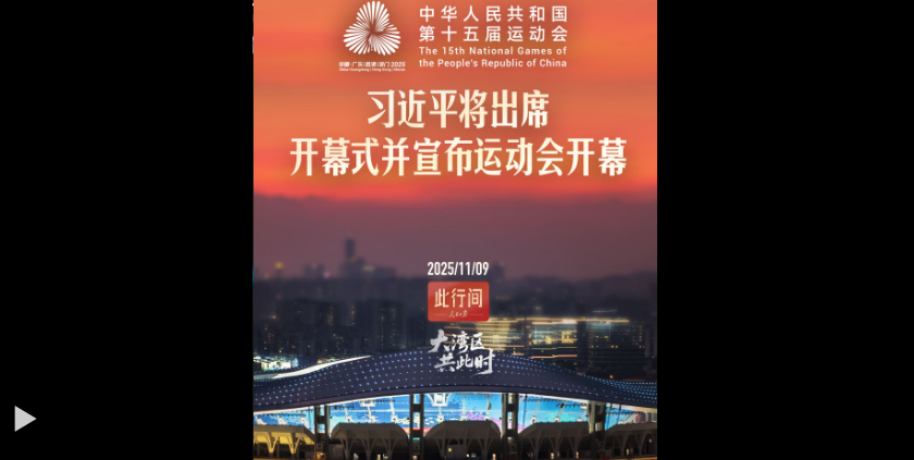 9日晚,习近平将出席中华人民共和国第十五届运动会开幕式并宣布运动会开幕。这是粤港澳三地的闪耀时刻,是全民全运的拼搏舞台,是神州大地的奋斗号角。大湾区共此时,共同期待!