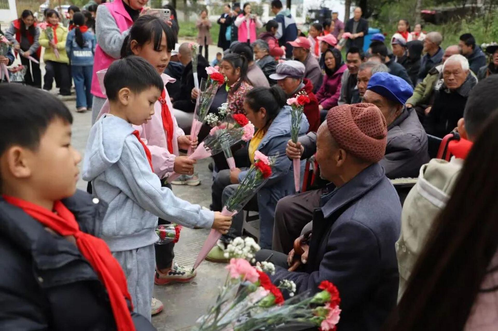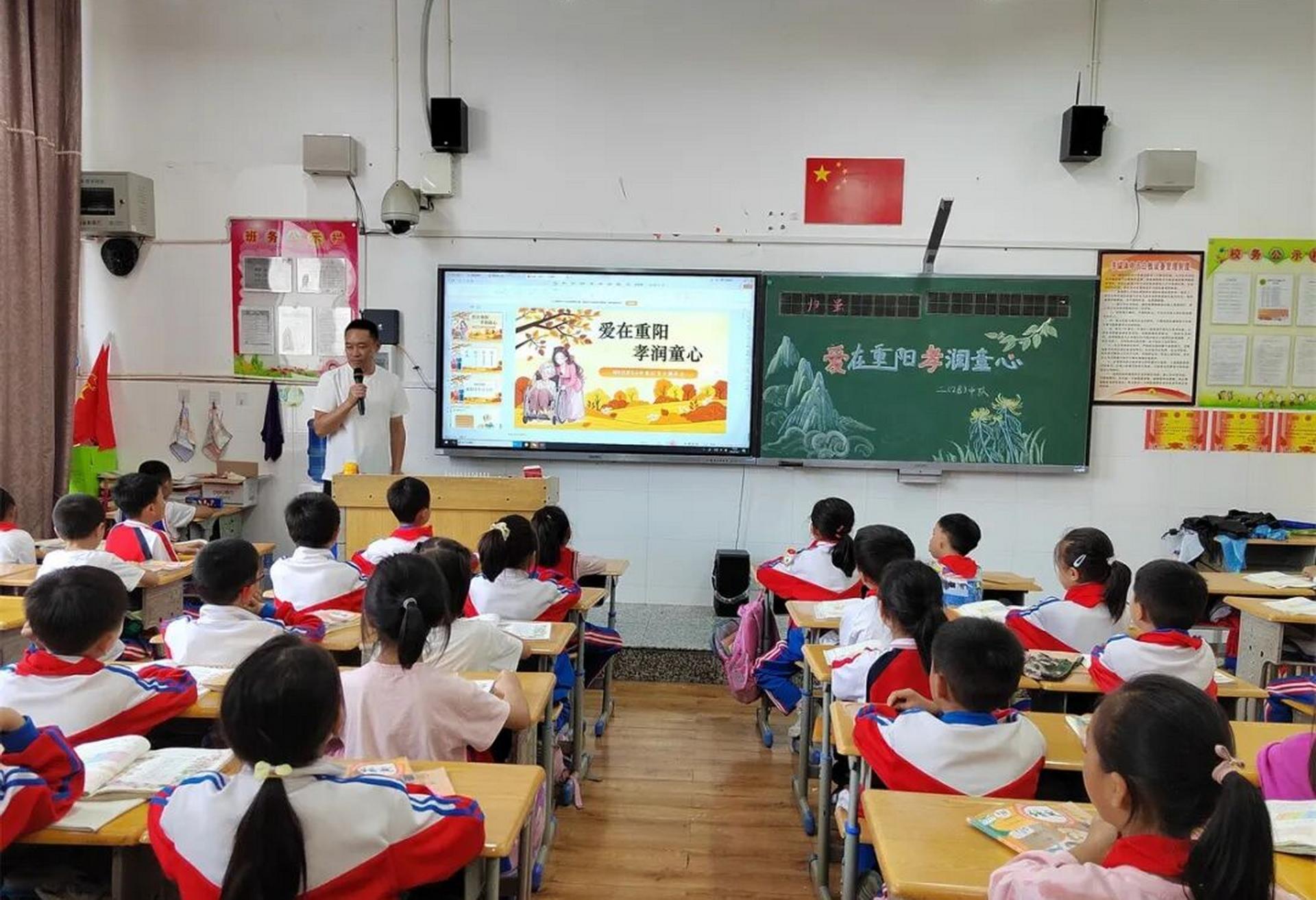 一份倡议,点燃感恩初心。重阳节前夕,各学校借助升旗仪式这一庄严时刻,由学校关工委向全体师生发出“尊老敬老、从我做起”的倡议。倡议号召同学们主动了解重阳节的历史渊源与文化内涵,了解长辈们的人生故事与经历;鼓励大家结合自身实际,制定专属“感恩清单”,坚持为长辈做力所能及的实事——或是一句日常的问候、一次贴心的陪伴,或是一项力所能及的家务,以点滴行动践行感恩承诺。这份倡议如同一颗种子,在孩子们心中播下感恩的种子,迅速在校园内营造出“人人讲孝德、事事传温情”的浓厚氛围。