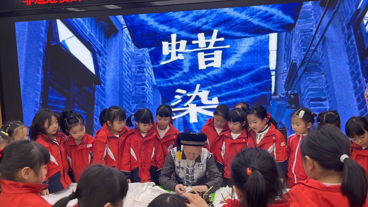 在蜡染课堂上,一块平凡的白布经过绘稿、点蜡、浸染、脱蜡多道工序,逐渐呈现出蓝白交织的灵动纹样,引得学生阵阵惊叹;芦笙课上,学生们不仅学习吹奏技巧,还在传承人的讲述中,用心读懂每一段旋律背后蕴含的民族情感。