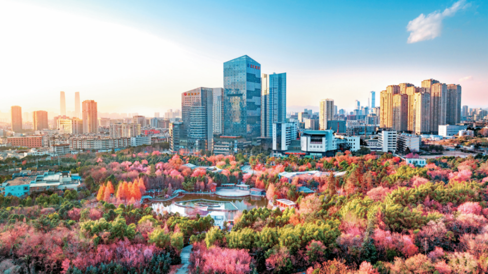 云南生态好、气候好、空气好,到处蓝天白云、青山绿水,每个城市各具特色。大多数地方,夏天平均温度不超过30℃,冬天则温暖如春,吸引了越来越多的人前来旅居。图为昆明市官渡森林公园。李维梅 摄