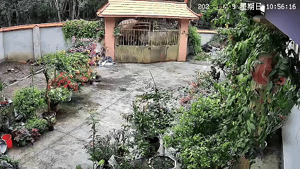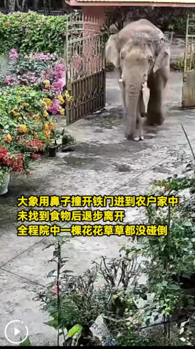 一头野生亚洲象用鼻子撞开铁门进到农户家中