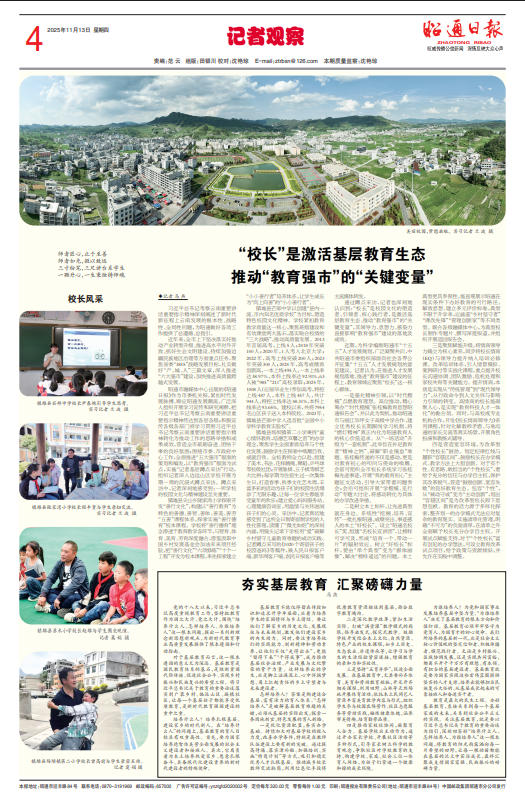 通过蹲点采访,记者也深刻地认识到:“校长”是校园文化的塑造者、引领者、核心践行者,是激活基层教育生态、推动“教育强市”的“关键变量”,其领导力、思想力、感染力直接影响“教育强市”建设的落地及成效。