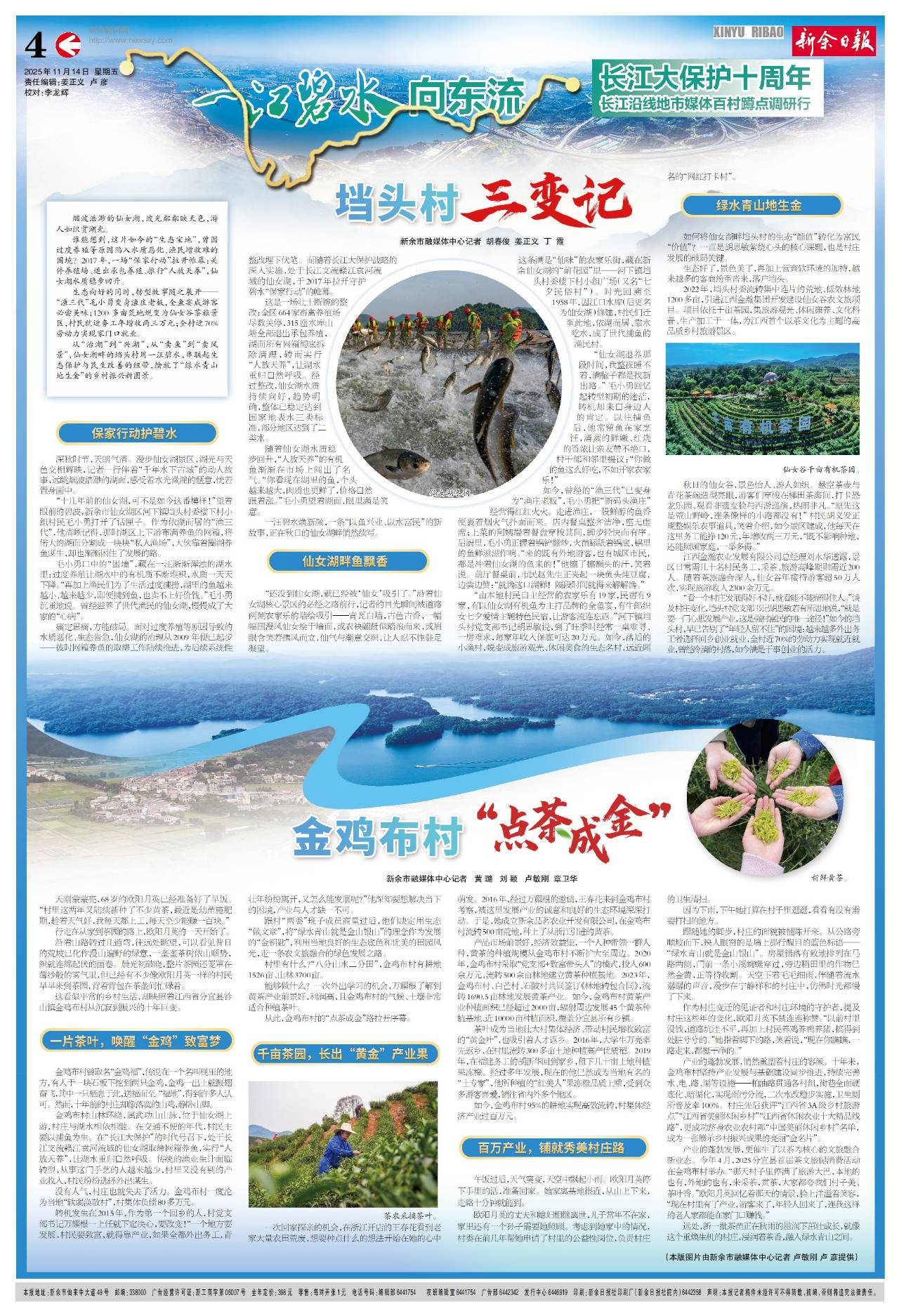 生态向好的同时,转型故事随之展开——“渔三代”毛小勇变身渔庄老板,全鱼宴成游客必尝美味;1200 多亩荒地蜕变为仙女谷茶旅景区,村民就近务工年增收两三万元;全村近70%劳动力实现家门口就业。